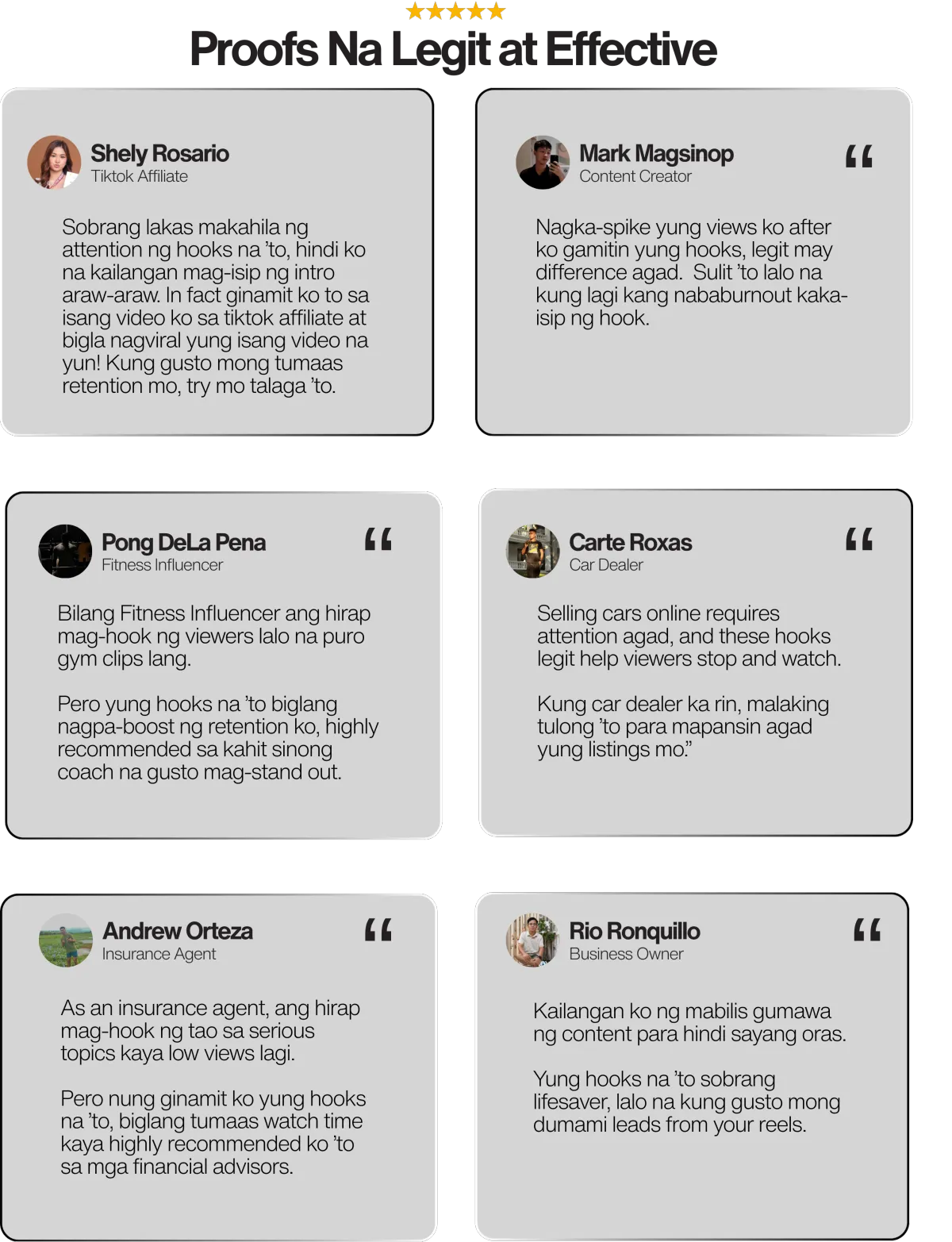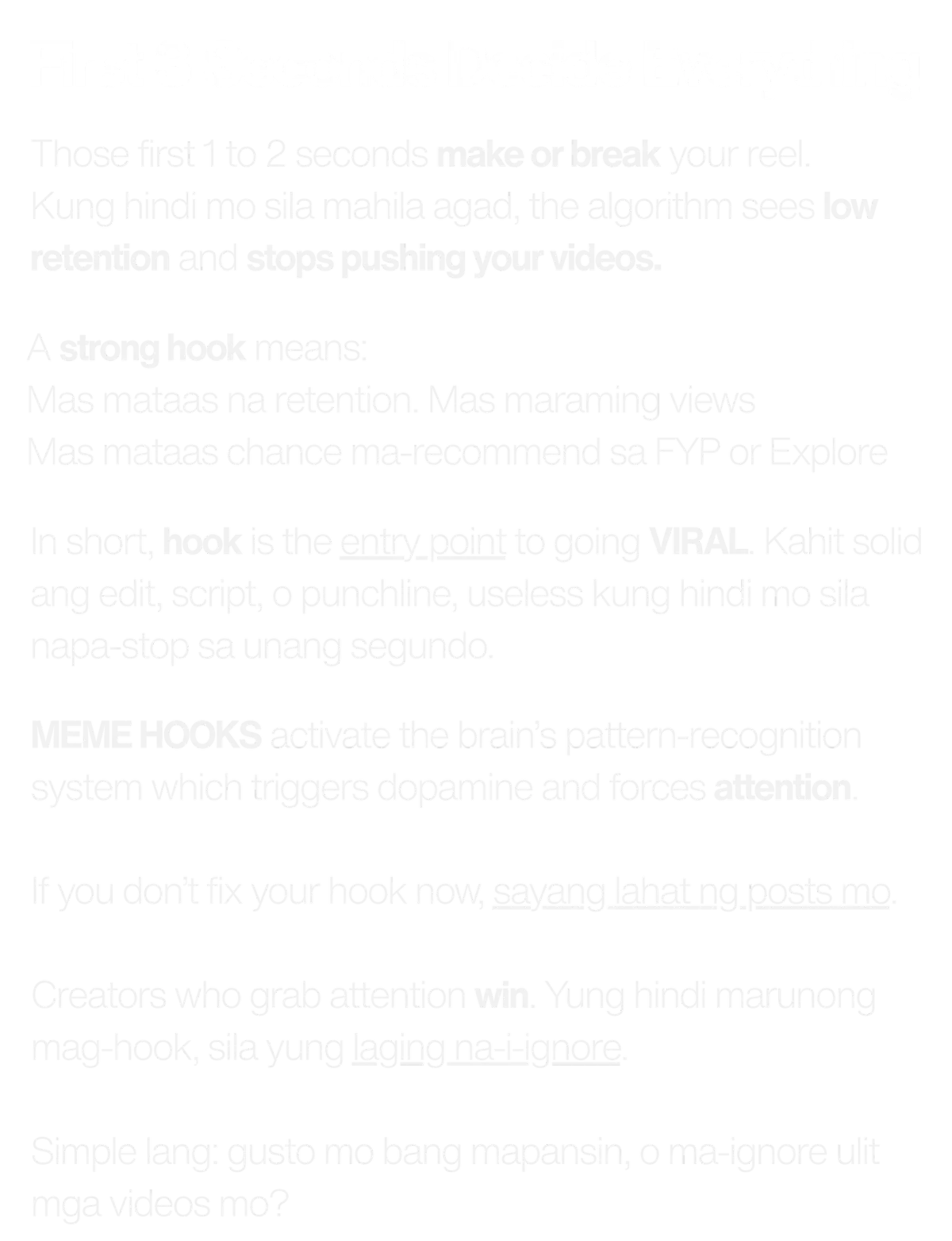 Oo, pwede sa lahat. Ang goal ng hooks ay pahintuin ang viewer kahit anong niche — fitness, business, insurance, car sales, content creator, kahit personal brand.
